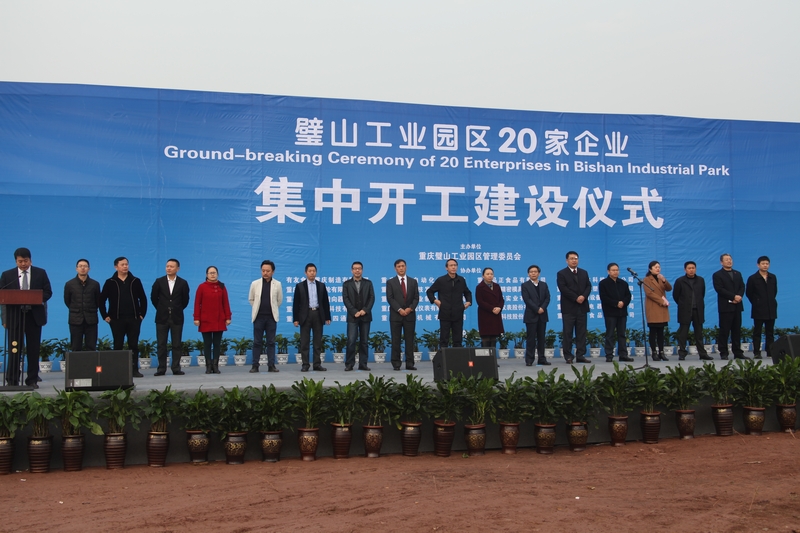 12月8日, 璧山工业园区20家企业集中开工建设仪式在璧山工业园区隆重举行,璧山区区委书记吴道藩、区长章勇武、区人大常委会主任薛方梅、区政协主席向邦俊出席了此次开工仪式,我公司董事长鹿有忠先生作为企业代表发言。
